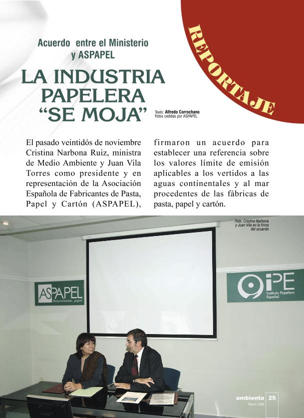La Industria papelera "se moja": Acuerdo entre el Ministerio y ASPAPEL