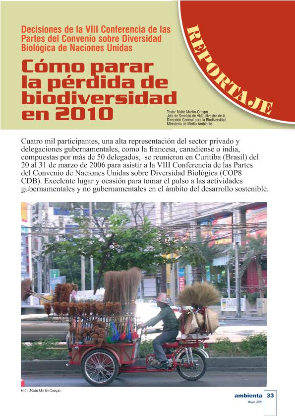 En: Ambienta. - Madrid : Ministerio de Medio Ambiente y Medio Rural y Marino, 2002- = ISSN 1577-9491. - 05/01/2006 Número 55 - Mes Mayo