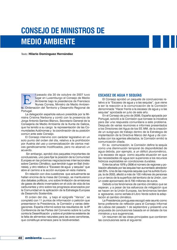 En: Ambienta. - Madrid : Ministerio de Medio Ambiente y Medio Rural y Marino, 2002- = ISSN 1577-9491. - 10/01/2007 Número 71 - Mes Noviembre