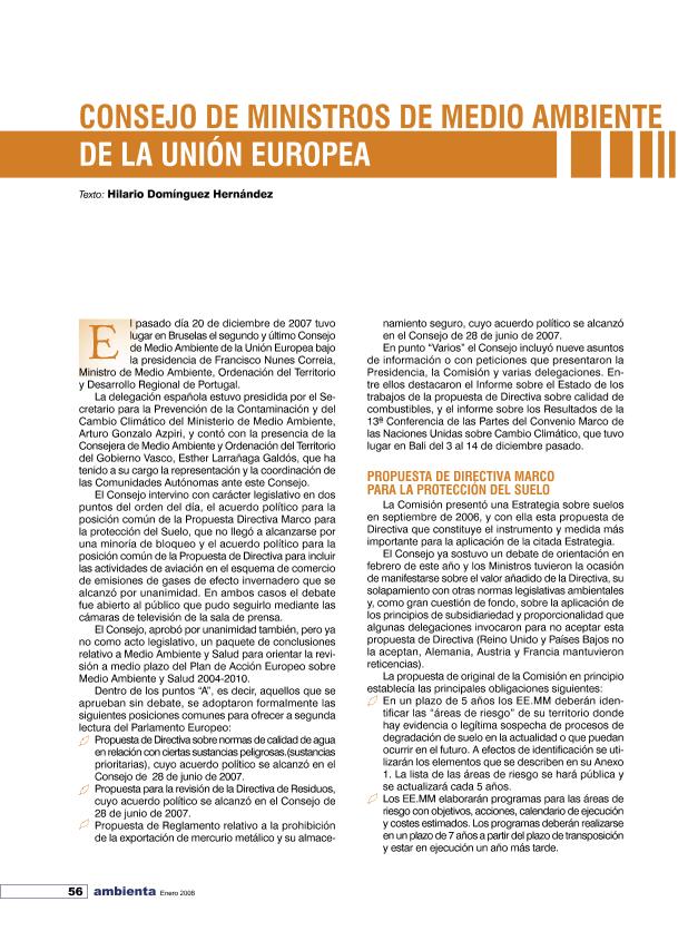 En: Ambienta. - Madrid : Ministerio de Medio Ambiente y Medio Rural y Marino, 2002- = ISSN 1577-9491. - 01/01/2008 Número 73 - Mes Enero