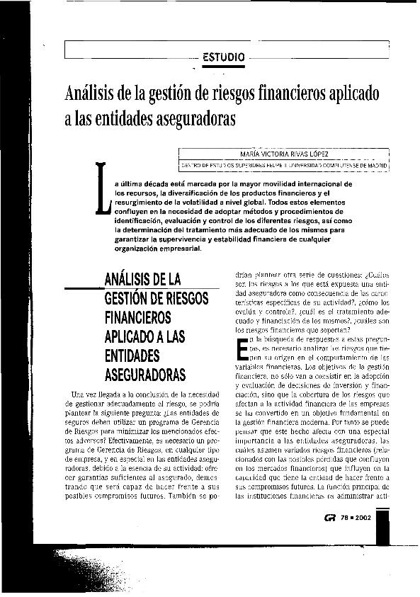 Análisis de la gestión de riesgos financieros aplicado a las entidades aseguradoras