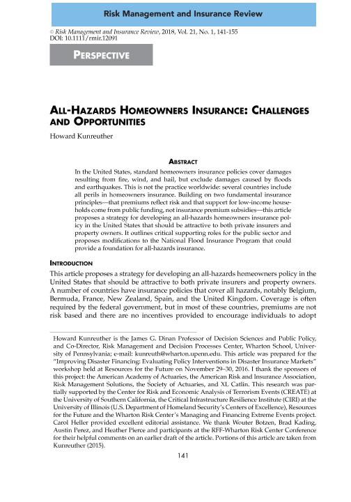 - Kunreuther, Howard