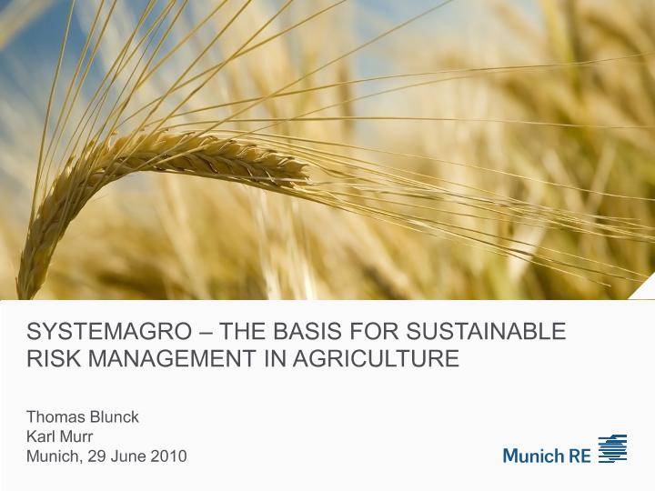SYSTEMAGRO : the basis for sustainable risk management in agriculture. SYSTEMAGRO : added value...