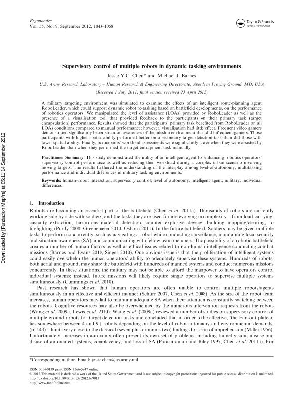 - En: Ergonomics : the international journal of research and practice in human factors and ergonomics. - Oxon [United Kingdom] : Taylor & Francis, 2010- = ISSN 0014-0139. - 01/08/2010 Volumen 53 Número 8 - agosto 2010