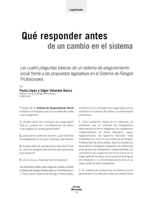 - En: Revista Fasecolda. - Bogotá : Unión de Aseguradoras Colombianos, 1979- = ISSN 0120-1972. - 01/04/2008 Número 126 - 2008 , p. 40-43
