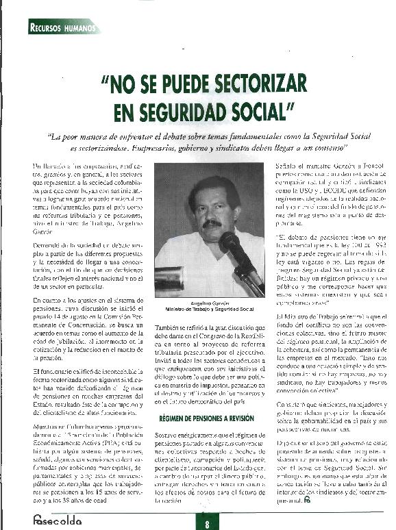 - En: Revista Fasecolda. - Bogotá : Unión de Aseguradoras Colombianos, 1979- = ISSN 0120-1972. - 01/10/2000 Número 96 2000 , p. 8