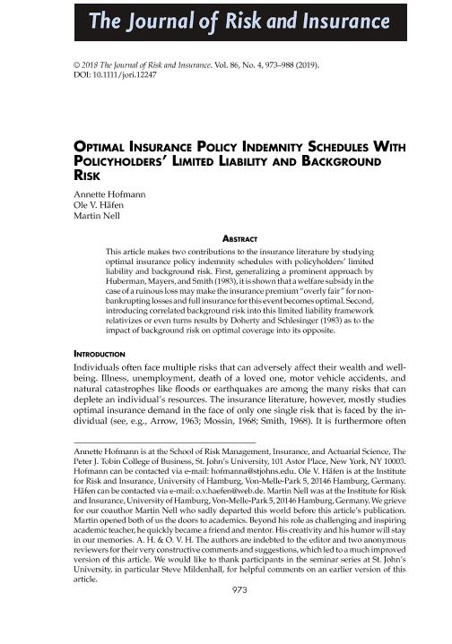 • En: The Journal of risk and insurance. - Nueva York : The American Risk and Insurance Association, 1964- = ISSN 0022-4367. - 02/12/2019 Volumen 86 Número 4 - diciembre 2019 , p. 973-988
