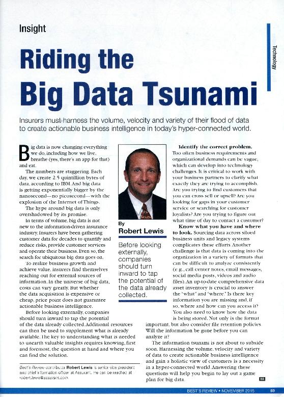 En: Best's Review. - New Jersey : A.M. Best Company, 1976- = ISSN 1527-5914. - 02/11/2015 Volumen 116 Número 7 - noviembre 2015 , p. 69