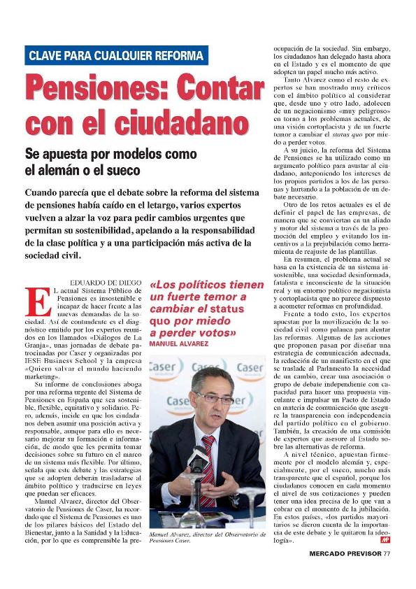 En: Mercado previsor. - Madrid : Ediciones de Negocios, S.L., 1982-2025. - 15/07/2011 Número 548-549 - 2011 , p. 77
