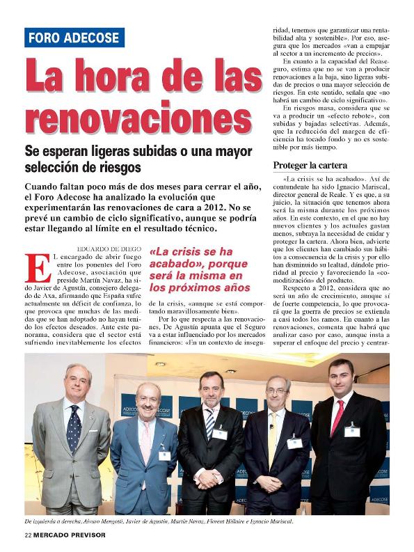 En: Mercado previsor. - Madrid : Ediciones de Negocios, S.L., 1982-2025. - 10/10/2011 Número 552 - 2011 , p. 18