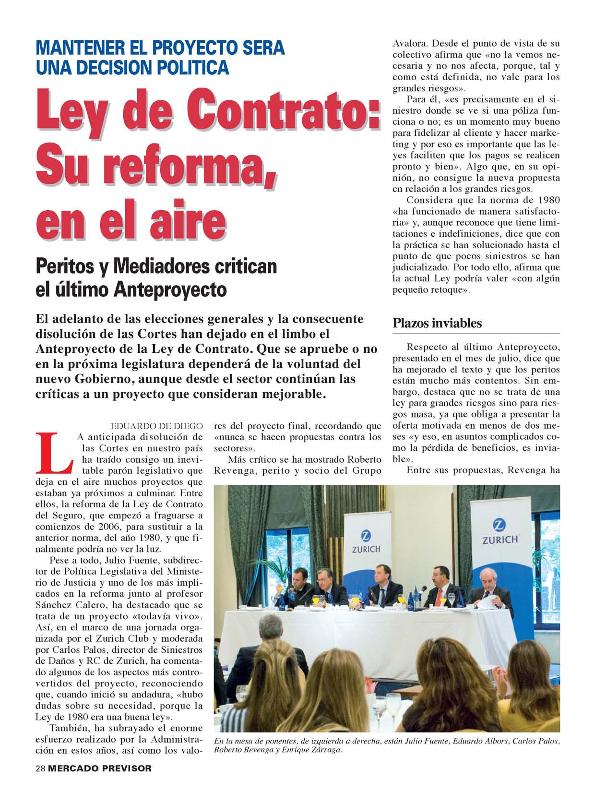 Ley de Contrato : su reforma, en el aire. peritos y mediadores critican su último anteproyecto