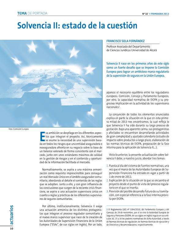 - En: Actuarios. - Madrid : Instituto de Actuarios Españoles, 1990-. - 03/06/2013 Número 32 - junio 2013 , p. 10-13