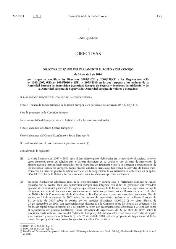 Directiva 2014/51/UE del Parlamento Europeo y del Consejo de 16 de abril de 2014 por la que se...
