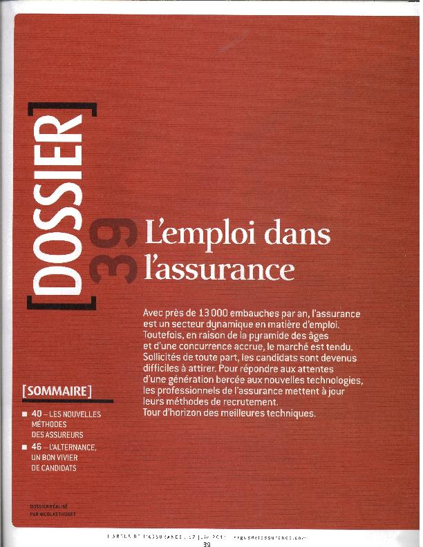 En: L'Argus de l'assurance. - Paris : Groupe Industrie Services Info, 1983- = ISSN 1626-4428. - 22/02/2013 Número 7301 - 22 febrero 2013 , p. 29-35