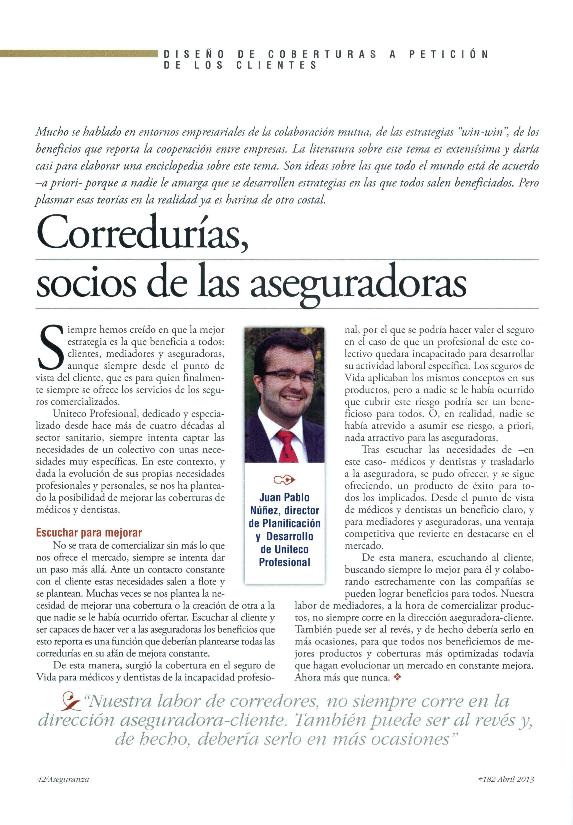 En: Aseguranza. - Madrid : Ediciones de Negocios S.L., 1996- = ISSN 1137-1048. - 01/04/2013 Número 182 - abril 2013 , p. 42