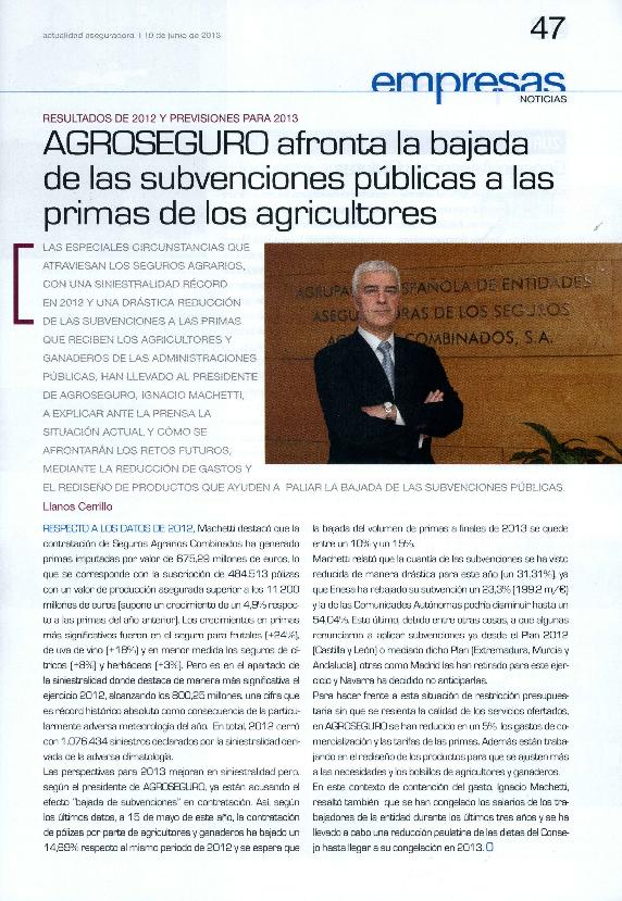 - En: Actualidad aseguradora. - Madrid : INESE, 1972- = ISSN 0012-947X. - 21/05/2012 Número 12 - 2012