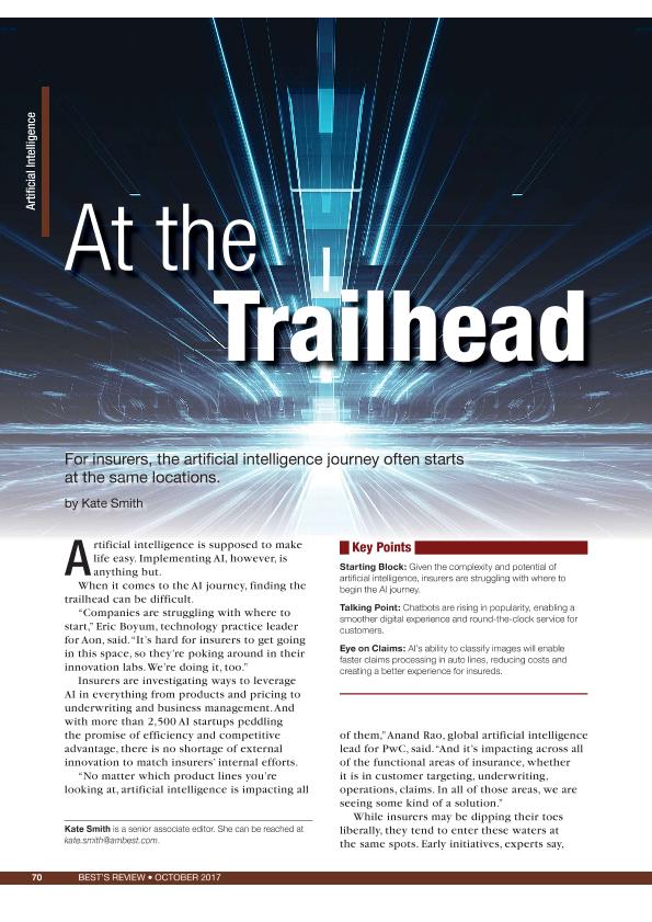 En: Best's Review. - New Jersey : A.M. Best Company, 1976- = ISSN 1527-5914. - 02/10/2017 Volumen 118 Número 6 - octubre 2017 , p. 70-73