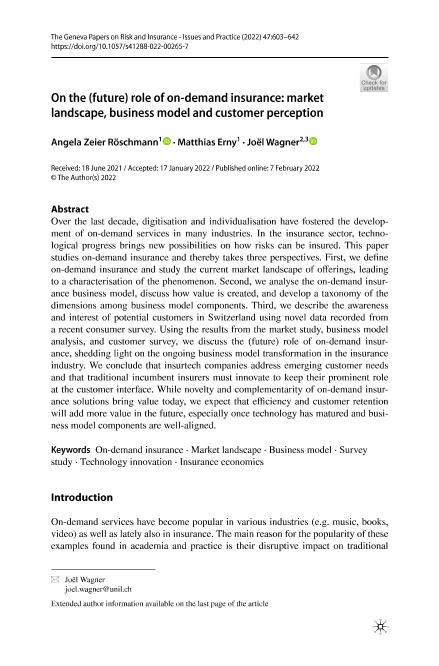 On the (future) role of on-demand insurance : market landscape, business model and customer...
