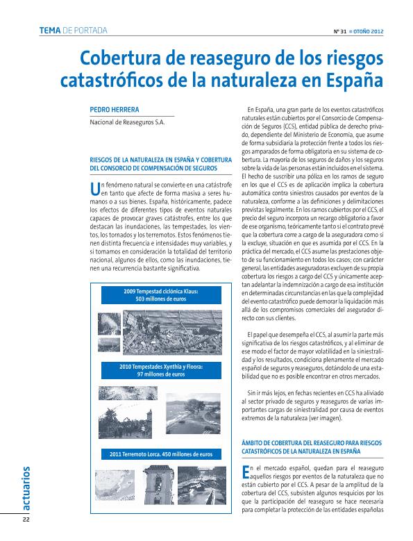 - En: Actuarios. - Madrid : Instituto de Actuarios Españoles, 1990-. - 07/12/2012 Número 31 - diciembre 2012 , p. 22-25