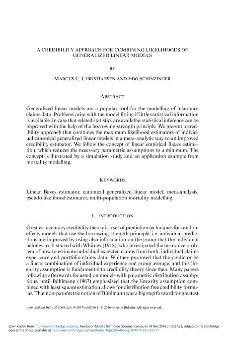 - En: European Actuarial Journal. - Cham, Switzerland : Springer Nature Switzerland AG, 2021-2022. - 06/12/2021 Volúmen 11 - Número 2 - diciembre 2021 , p. 441-462