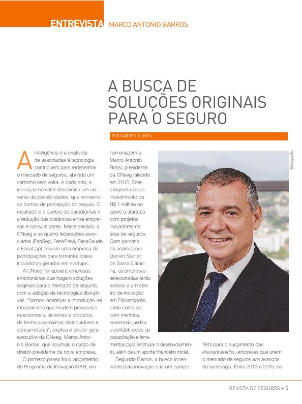 A Busca de soluções originais para o seguro : Entrevista a Marco Antonio Barros, [diretor geral...