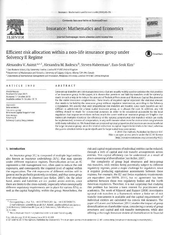 - En: Insurance : mathematics and economics. - Oxford : Elsevier, 1990- = ISSN 0167-6687. - 12/01/2015 Volumen 60 Número - enero 2015