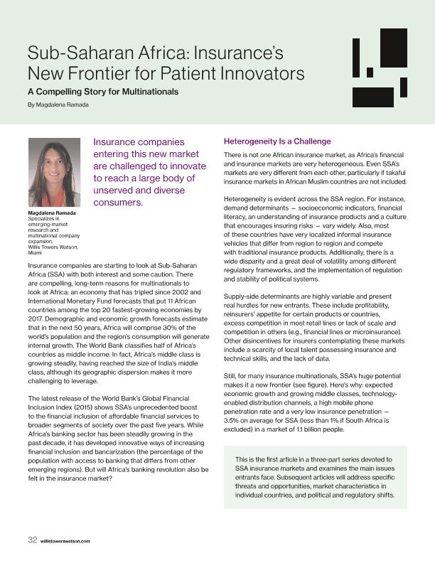 Sub-Saharan Africa : insurance's new frontier for patient innovators : a compelling story for...
