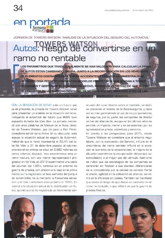 Autos : riesgo de convertirse en un ramo no rentable : Jornada de Towers Watson : "Análisis de la...
