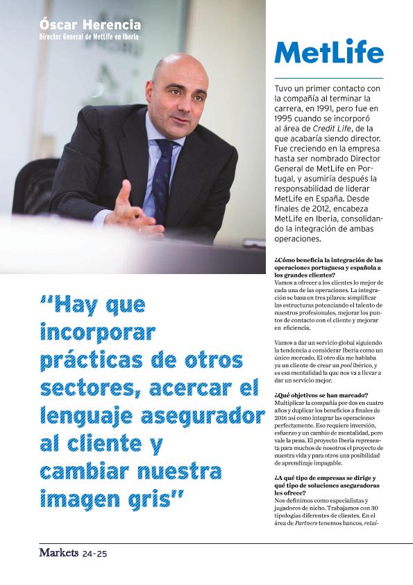 Óscar Herencia, Director General de MetLife en Iberia : "Hay que incorporar prácticas de otros...