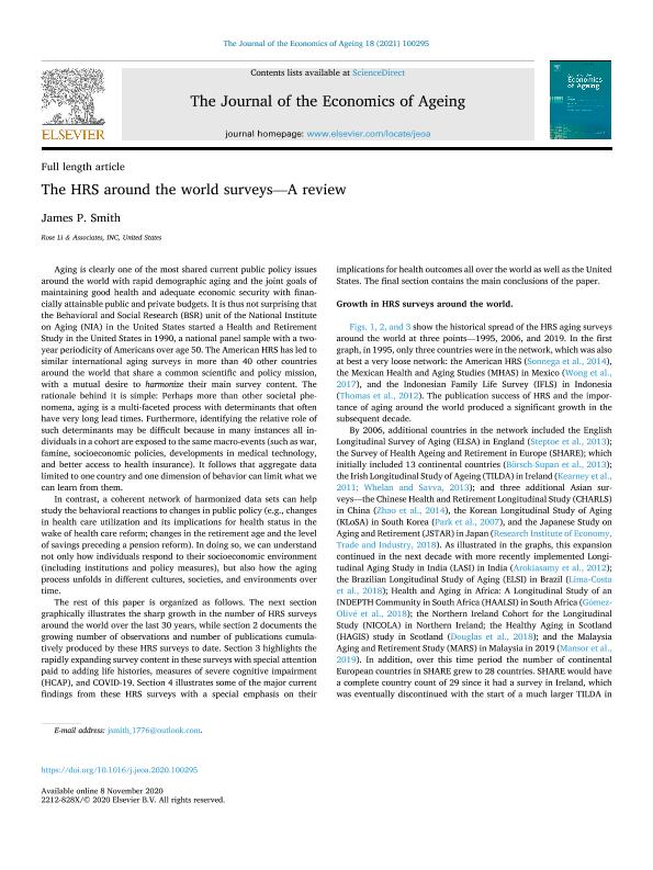 The HRS around the world surveys. A review