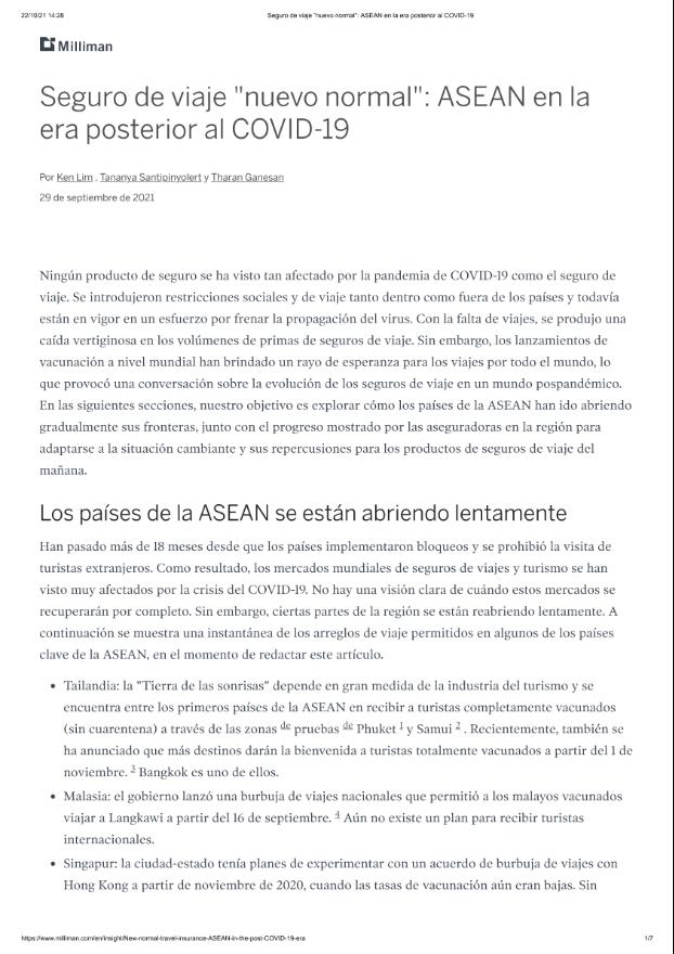 Seguro de viaje "nuevo normal" : ASEAN en la era posterior al COVID-19