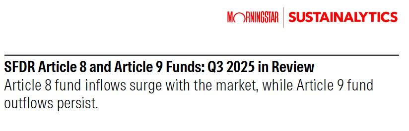 SFDR Article 8 and Article 9 Funds : Q3 2025 in review : Article 8 fund inflows surge with the...