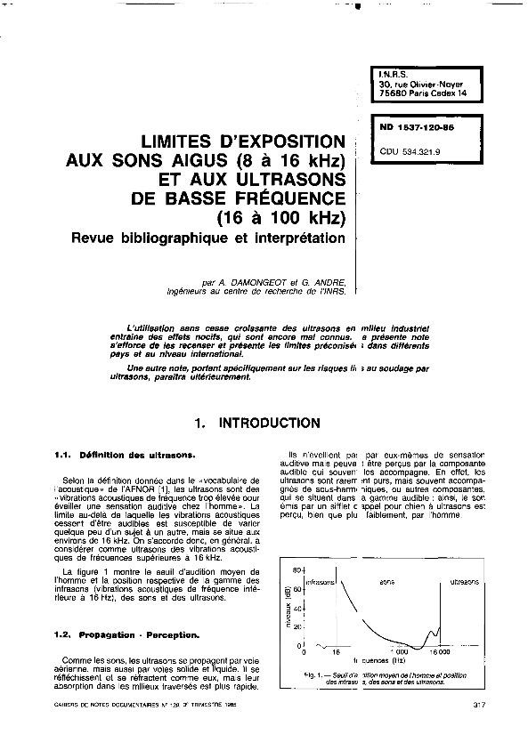 Limites d'exposition aux sons aigus (8 à 16 kHz) et aux ultrasons de basse fréquence (16 à 100...