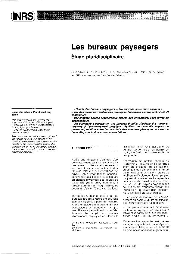 Les Bureaux paysagers : étude pluridisciplinaire