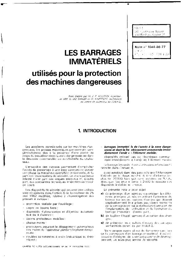Les Barrages immatériels utilisés pour la protection des machines dangereuses