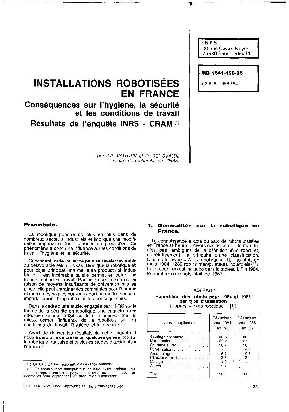 Installations robotisées en France : conséquences sur l'hygiène, la sécurité et les conditions de...