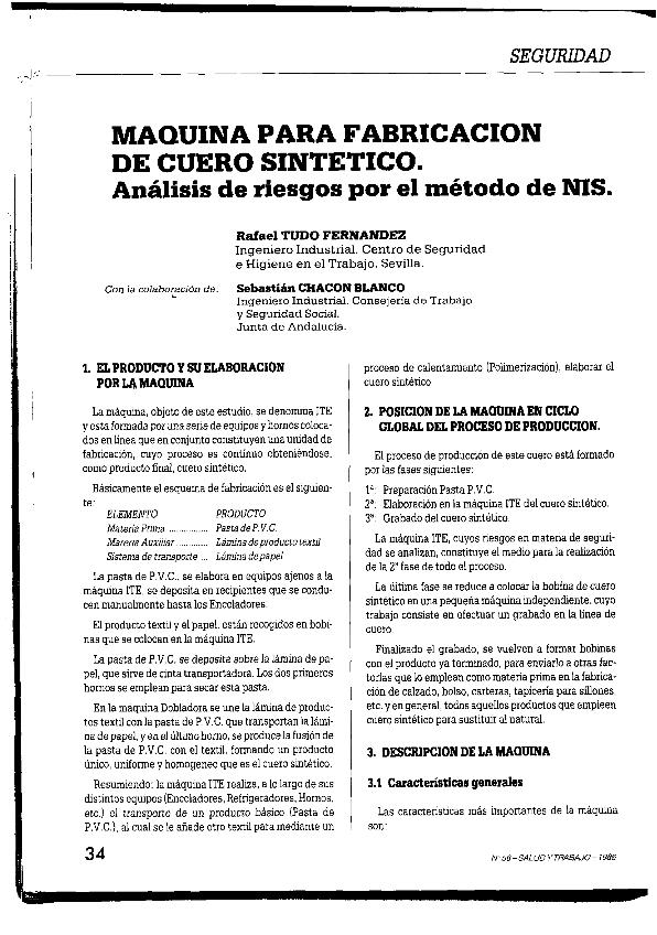 Máquina para la fabricación de cuero sintético : análisis de riesgos por el método Nis
