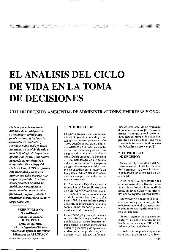 El Análisis del ciclo de vida en la toma de decisiones : útil de decisión ambiental de...