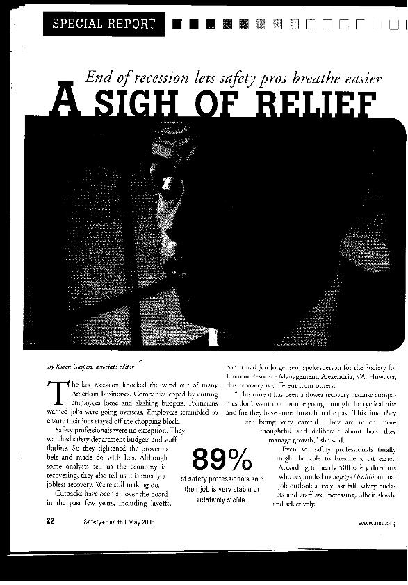 A Sigh of relief : end of recession lets safety pros breathe easier