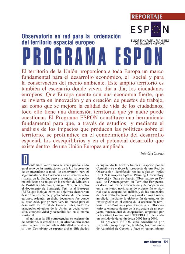 Programa ESPON: Observatorio en red para la ordenación del territorio espacial europeo