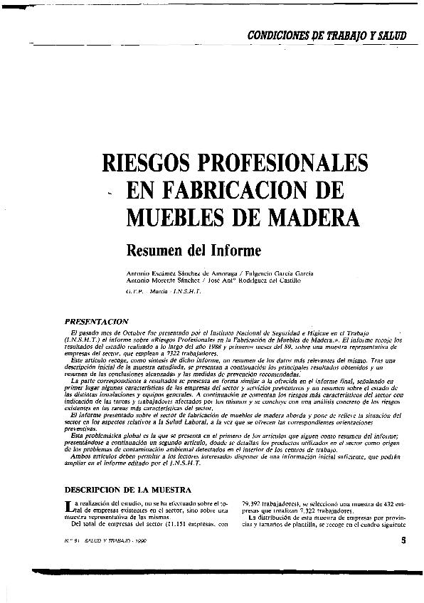 Riesgos profesionales en fabricación de muebles de madera : resumen del informe