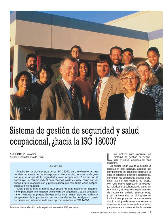 Sistema de gestión de seguridad y salud ocutpacional, ¿hacia la ISO 18000?