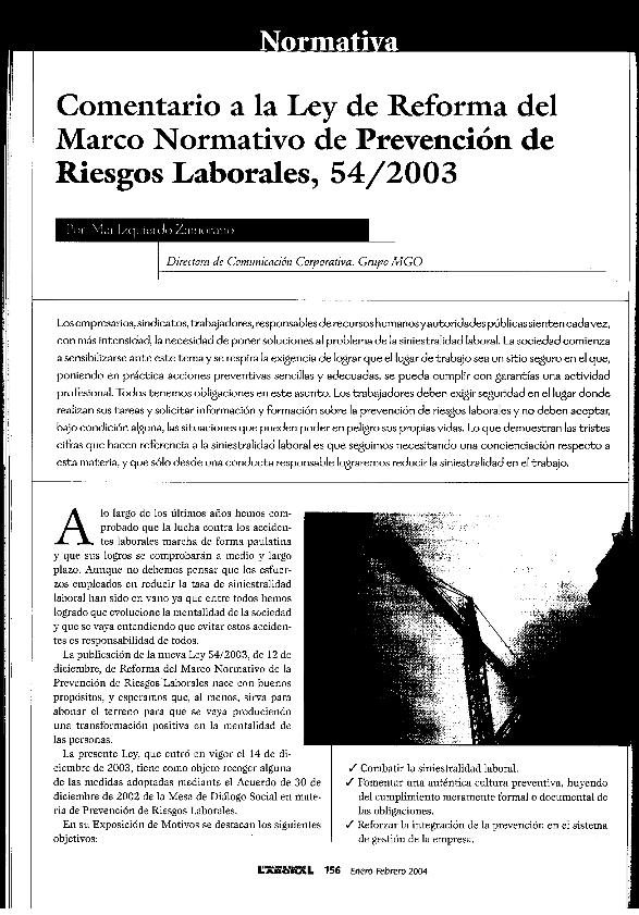 Comentario a la Ley de Reforma del marco normativo de Prevención de Riesgos Laborales, 54-2003