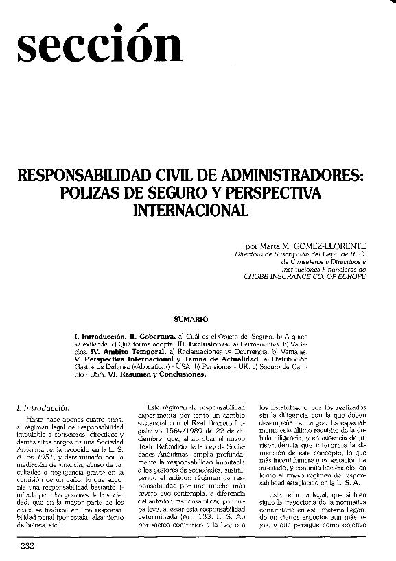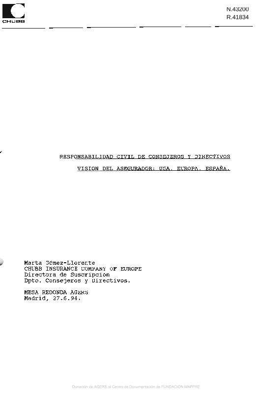 Responsabilidad civil de consejeros y directivos : visión del asegurador : U.S.A., Europa, España