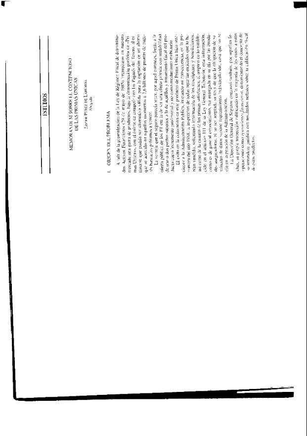 Memorándum sobre el contencioso de las primas únicas / por Javier Pérez de Laborda. Líneas...