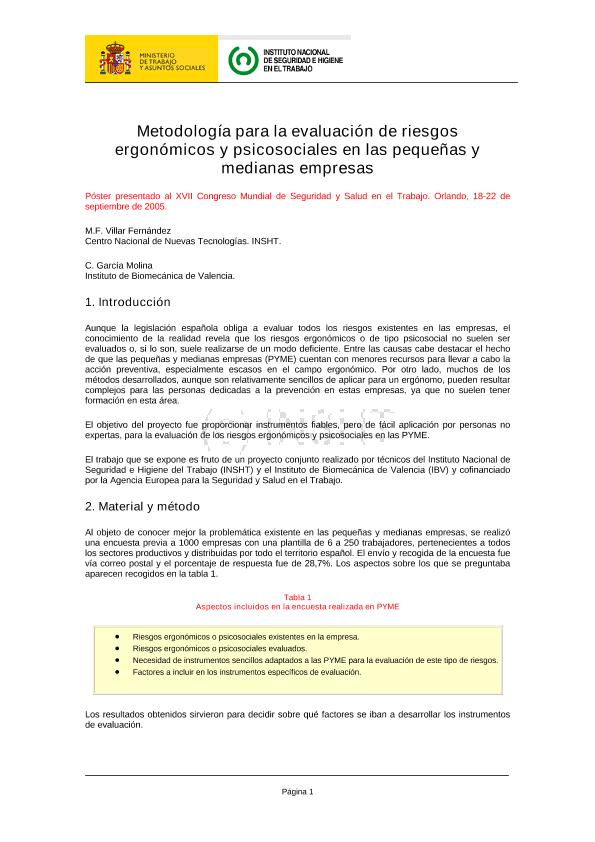 Metodología para la evaluación de riesgos ergonómicos y psicosociales en las pequeñas y medianas...