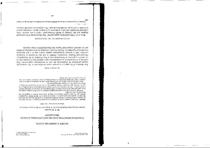 European initiatives and the occupational hygiene profession