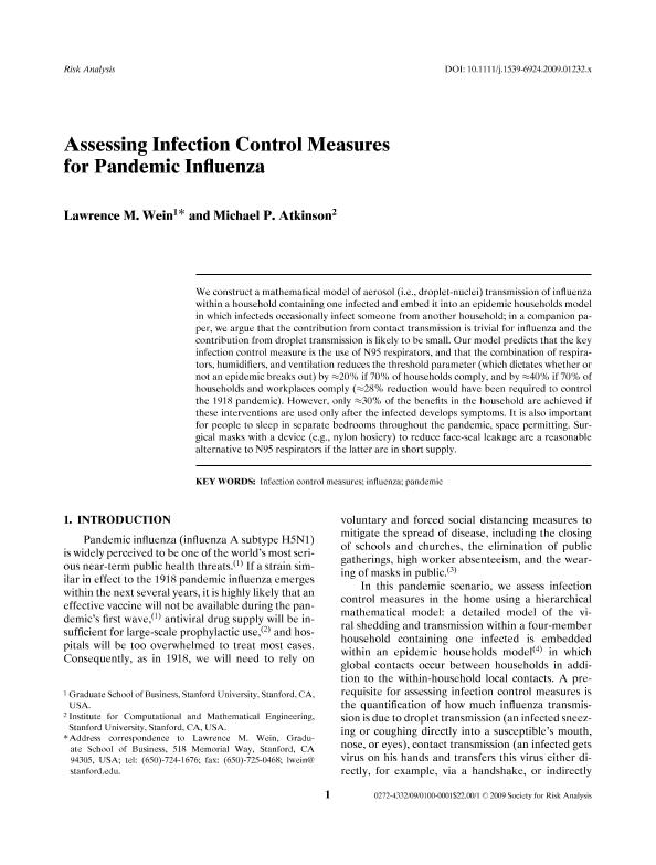 Assesing infection control measures for pandemic influenza
