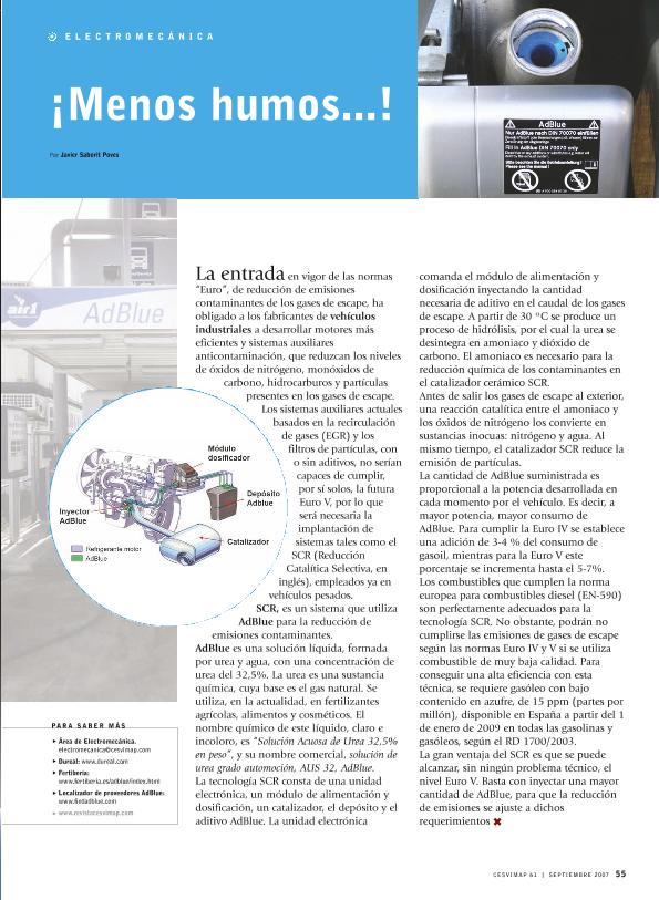 - En: CESVIMAP : revista técnica de reparación y peritación de daños en carrocería y pintura de automóviles. - Madrid : Centro de Experimentación y Seguridad Vial MAPFRE, 1992- = ISSN 1132-7103. - 01/09/2007 Número 61 - septiembre 2007
