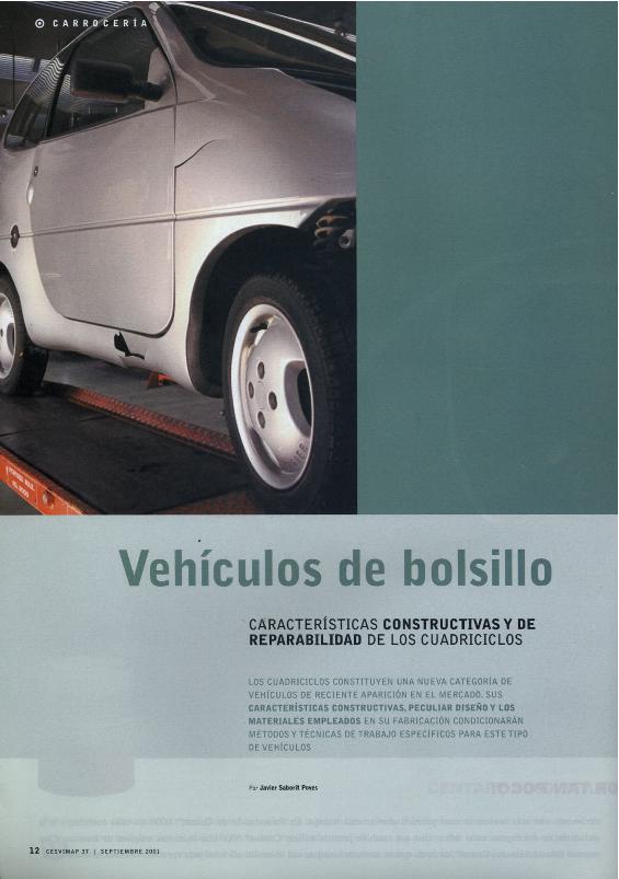 - En: CESVIMAP : revista técnica de reparación y peritación de daños en carrocería y pintura de automóviles. - Madrid : Centro de Experimentación y Seguridad Vial MAPFRE, 1992- = ISSN 1132-7103. - 01/09/2001 Número 37 Septiembre 2001